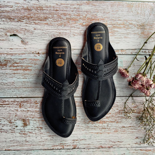 Black Pearl Faux Leather Kolhapuri