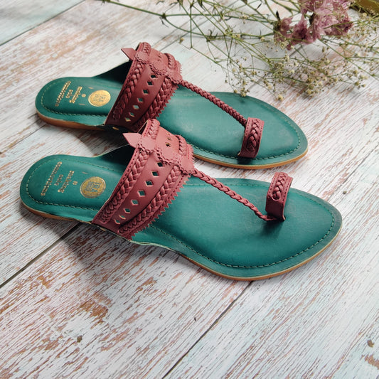 Green and Maroon Faux Leather kolhapuris